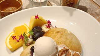 カフェ (新宿三丁目駅)「AIN SOPH. Journey SHINJUKU」のパンケーキ 「AIN SOPH. Journey SHINJUKU」のグルテンフリーパンケーキとサラダパフェの紹介 2025.10.01 カフェレストラン
