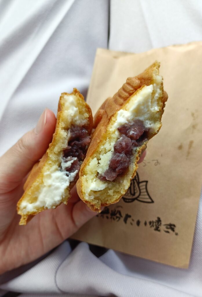 あんこの甘さとクリームチーズの酸味とコクがベストマッチ☆私の大好きなたい焼きです!めっちゃおすすめです!